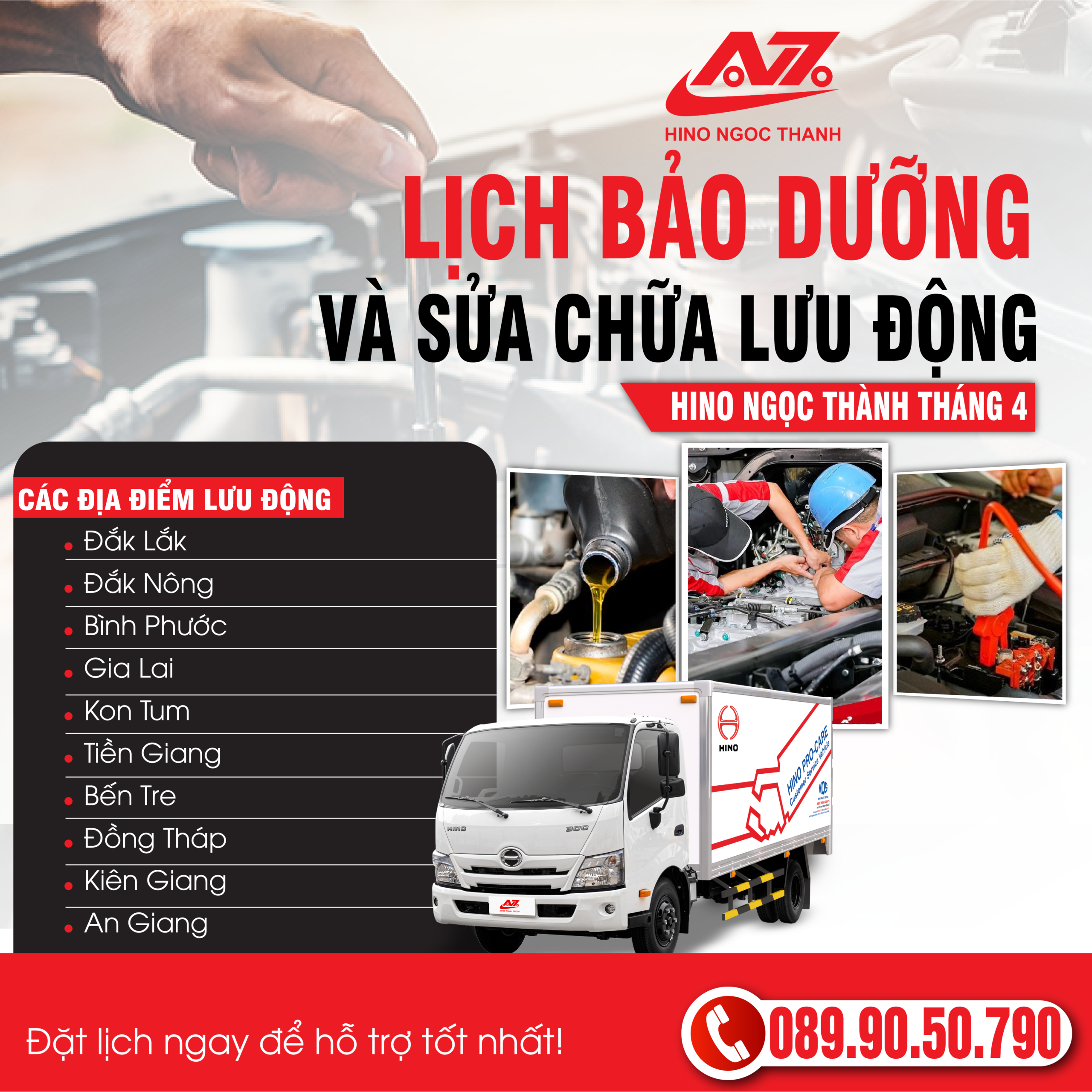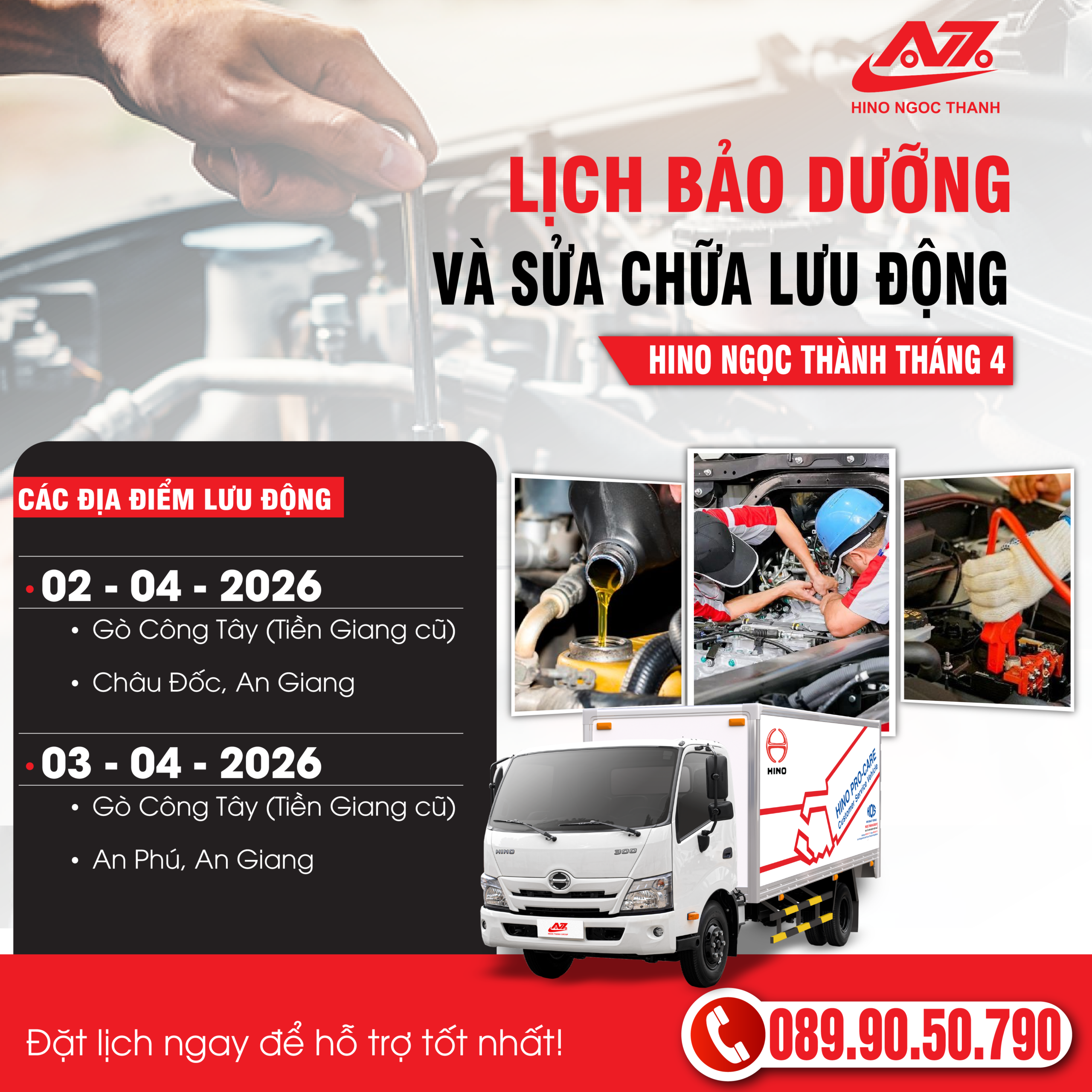 HINO NGỌC THÀNH I BẢO DƯỠNG & SỮA CHỬA LƯU ĐỘNG THÁNG 04/2026