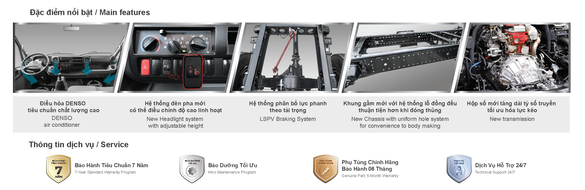 – Bảo trì bảo dưỡng: Xe cơ sở bảo dưỡng định kỳ theo tiêu chuẩn của Hino Motors Việt Nam.