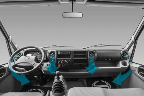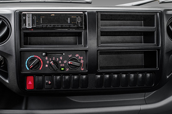 Hệ thống điều hòa Denso hai chiều làm lạnh nhanh và tích hợp chức năng sấy kính giúp cabin luôn mát mẻ, không bị đọng sương. Bảng điều khiển trung tâm bố trí khoa học, dễ sử dụng. Hệ thống giải trí: AM/FM Radio, cổng USB, đầu đọc thẻ nhớ và trong phiên bản 2025 có thêm Bluetooth giúp tài xế giải trí và thuận tiện hơn trên các hành trình dài.